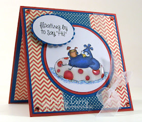 Welcome to our From the Heart Stamps blog hop. Our theme this month is Patriotic colors (Red, White and Blue). Our designers are showcasing lots of gorgeous projects. I'm using the new image Inner Tube Birdbrain, this is the Stamp of the Month for August! Such a fun image.